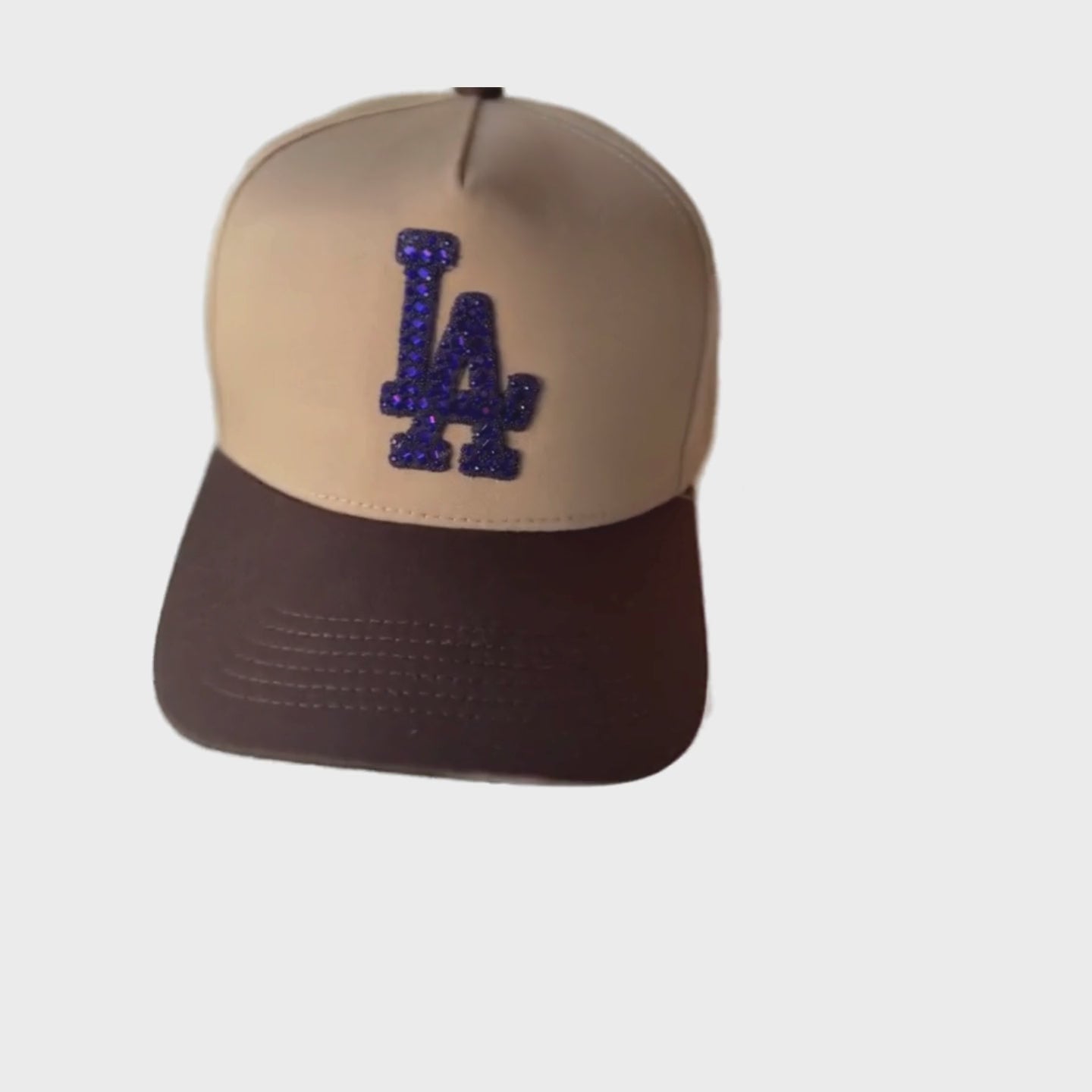 Shine with city pride in the LA Glitter Embroidered Baseball Cap ✨. Featuring a bold navy-blue LA logo with glitter embroidery, this cap brings a touch of sparkle to your everyday style. The tan crown paired with a deep brown brim gives it a clean, earthy look—perfect for pairing with casual streetwear or standout fits.
